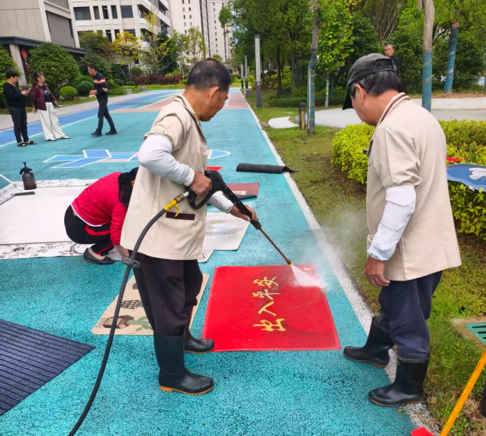 活动当日,小区广场划分三大功能区高效运转:物资发放区,工作人员将新鲜鸡蛋、优质面条有序递至60岁以上老年业主手中,暖心叮嘱“注意保暖,节日快乐”;地毯清洗区,业主推着卷好的地毯排队,物业高压清洗设备高效作业,工作人员细致冲刷、晾晒,沾满灰尘的地毯迅速焕然一新;磨刀服务区,专业师傅手法娴熟,砂轮高速转动,锈迹斑斑的菜刀、剪刀经打磨后瞬间锋利,不少业主手持磨好的刀具笑着表示“这下切菜省事多了”。