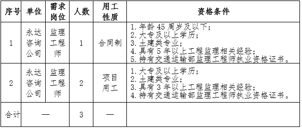(一)公告。招聘岗位、人数、任职资格等信息在 “三明市路桥集团”官网(www.smlqjt.com)向社会统一公告。