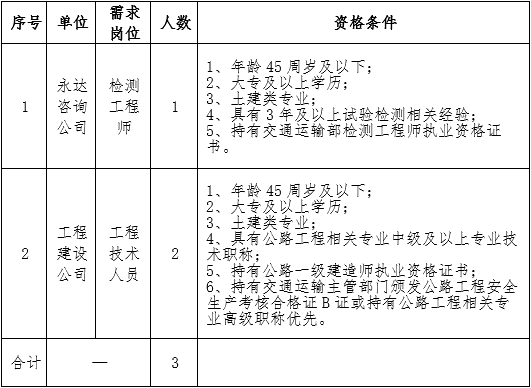 (一)公告。招聘岗位、人数、任职资格等信息在“福建就业网”(www.fj99.org.cn)、“三明人才网”(www.smrcw.org.cn)、“三明市路桥集团”官网(www.smlqjt.com)向社会统一公告。